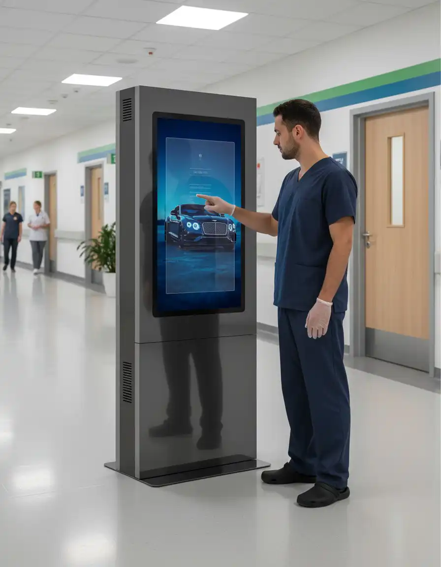 - کیوسک خدماتی دیواری عمودی یک طرفه، 32، 43 و 55 اینچ، با تاچ IR یا خازنی، با رایانش اندرویدی یا ویندوزی