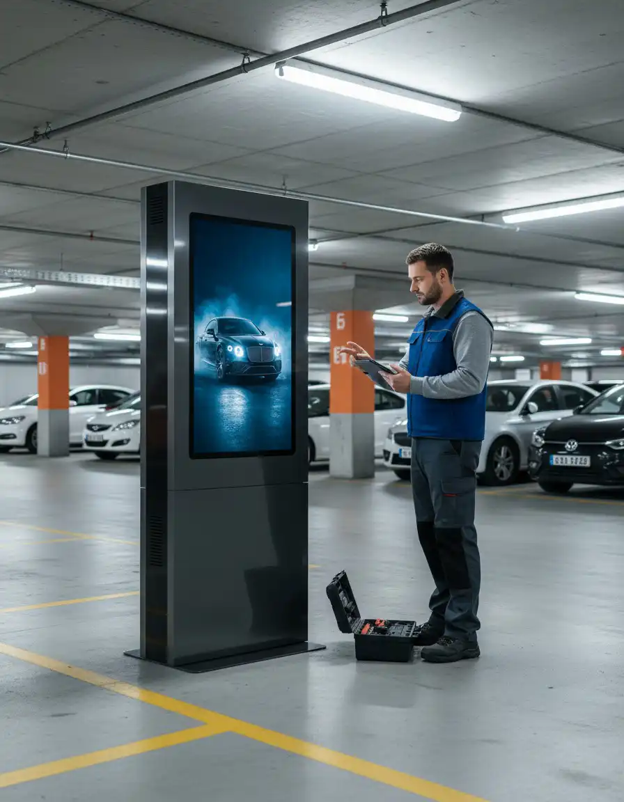 - کیوسک ارتباطی دیواری افقی یک طرفه، 55 و 65 اینچ، فاقد تاچ، با رایانش ویندوزی و تجهیزات صوتی و تصویری
