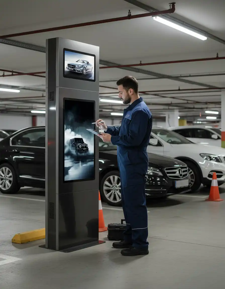 - کیوسک ارتباطی ایستاده افقی یک طرفه، 55 و 65 اینچ، فاقد تاچ، با رایانش ویندوزی و تجهیزات صوتی و تصویری